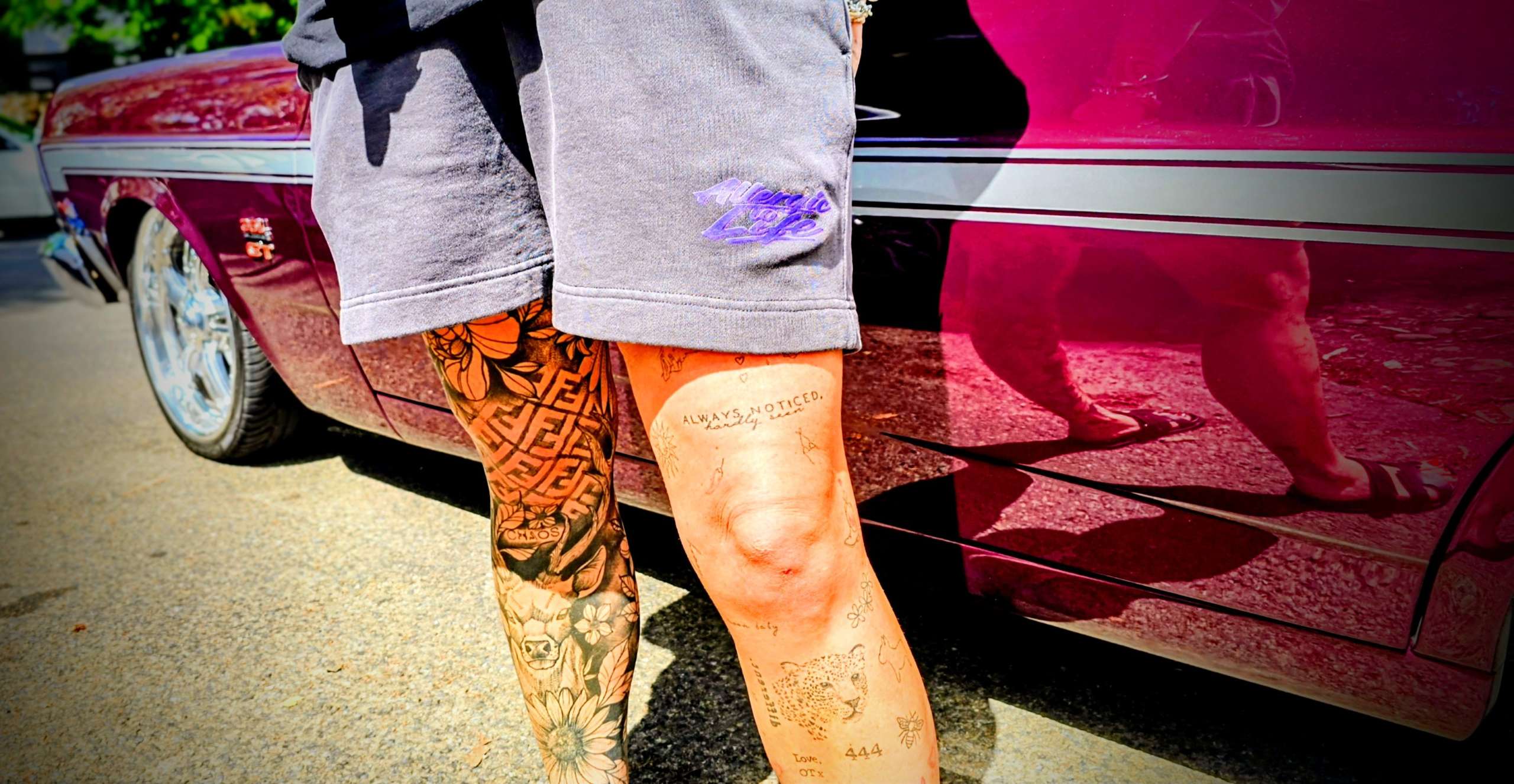 The Allergic to Life leg logo hits in